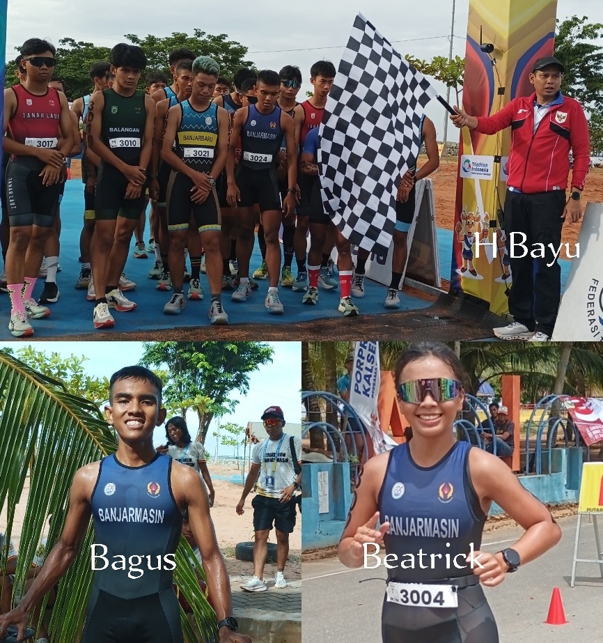 Sebanyak tiga atlet asal kota berjuluk Kayuh Baimbai, tancap gas dengan mendulang dua keping medali emas, satu perak, dan satu perunggu di nomor Duathlon Individu Sprint Distance.