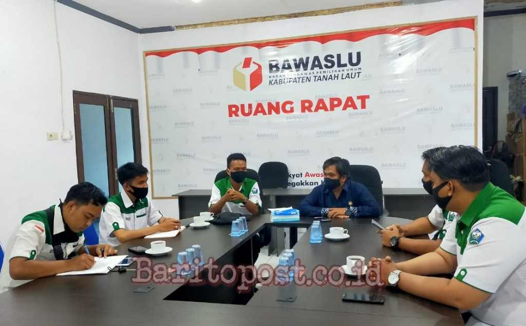 Pelaihari,BARITO – Badan Pengawas Pemilihan Umum (Bawaslu) Kabupaten Tanah Laut kedatangan tamu dari menerima Pimpinan Pusat Himpunan Pemuda Pelajar Mahasiswa Tanah Laut (HPPMTL) Kamis, (22/10) di Kantor Bawaslu Tala Jalan A.Syairani Pelaihari.