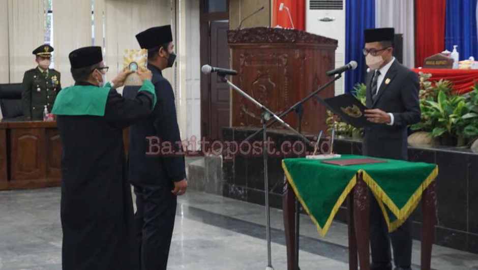 Setelah SK sebagai anggota DPRD Tala untuk masa bakti 2019 sampai 2024 dibacakan Sekretaris Dewan (Sekwan) Lutfiyati Uyun, ketua DPRD Tala Muslimin melakukan pengambilan sumpah kepada Aminullah Wibisono.