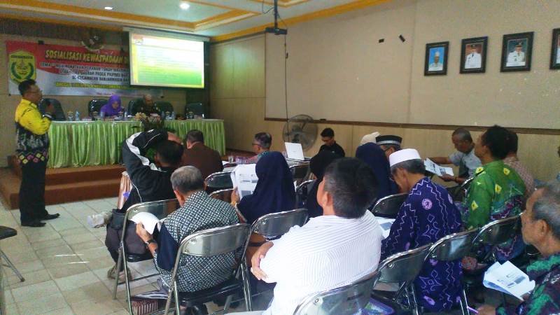 Banjarmasin, BARITO – Untuk meningkatkan peranan tokoh masyarakat dalam menciptakan stabilitas daerah pasca pilpres, Kesbangpol Kota Banjarmasin gandeng warga, ketua RT dan tokoh masyarakat di acara Sosialisasi kewaspadaan dini, Kamis (11/7) di Aula Kantor Camat Banjarmasin Barat.