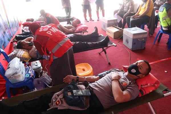 Banjarmasin, BARITO- Polresta Banjarmasin menggelar bakti kesehatan donor darah jelang hari ulang tahun Bhayangkara ke-76 tahun 2022, Selasa (07/06/2022). Terkumpul 100 kantong darah dengan giat ini bisa bermanfaat untuk masyarakat yang butuhkan darah