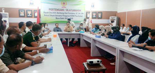 Banjarmasin, BARITO – Ketua Umum Komite Olahraga Nasional Indonesia (KONI) Kalsel, Bambang Heri Purnama, mengumumkan kepengurusan baru periode 2021-2025. Sekaligus melakukan silaturahmi seluruh pengurus, Selasa (9/2/2022) siang di Banjarmasin.