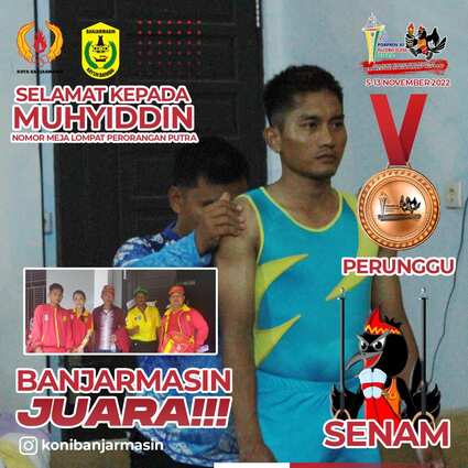 “Perolehan medali Muhyiddin menjadi medali pertama bagi kontingen Banjarmasin,” ungkap Ketua Komite Olahraga Nasion Indonesia (KONI) Banjarmasin, H Hermansyah.