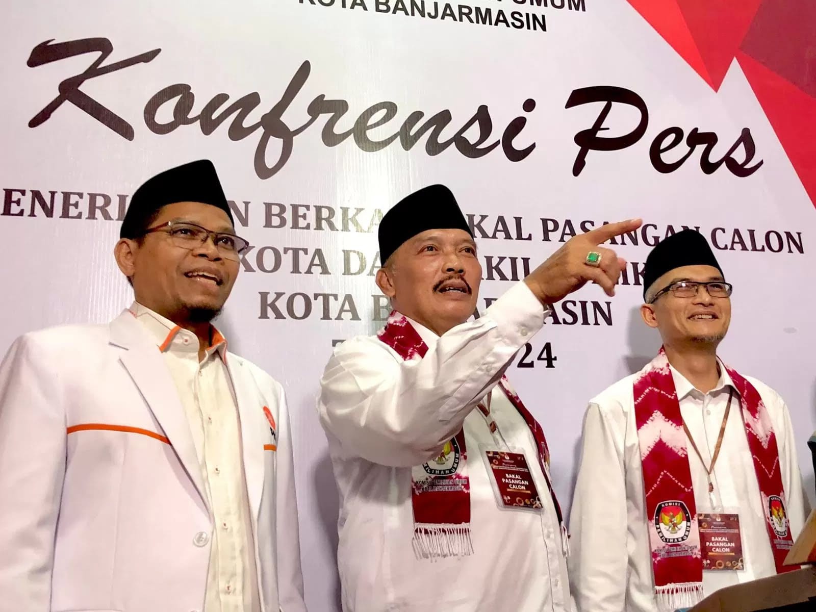 Pasangan yang diusung PKS, PKB, Partai Ummat ini datang ke KPU Kota Banjarmasin, pukul 14.00 Wita, yang sebelumnya didahului shalat dzuhur di Masjid Hasanuddin Majedi, Kayu Tangi Banjarmasin.
