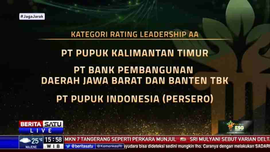 bank bjb Raih Leadership AA dalam ESG Disclosure Awards 2021