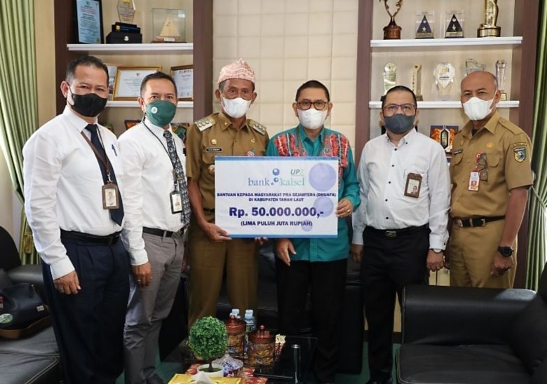 Penyerahan bantuan dilakukan secara simbolis oleh Direktur Operasional Bank Kalsel, Ahmad Fatrya Putra kepada Bupati Tanah Laut, H. Sukamta. Penyerahannya didampingi oleh Sekretaris Daerah Kabupaten Tanah Laut Dahnial Kifli, Direktur UPZ Bank Kalsel, HM Fajri Muhtadi, Pgs Divisi Corsec Suriadi dan Kepala Cabang Pelaihari Muhammad Hanafi, Rabu 2 Pebruari 2022.
