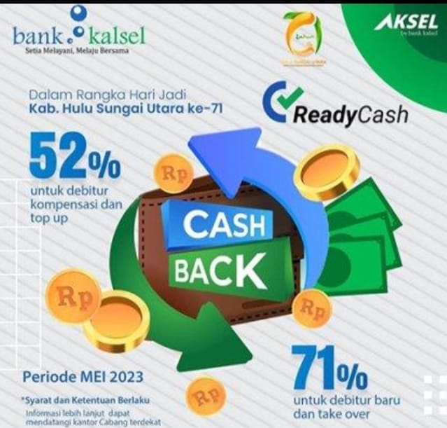 Di bulan Mei 2023 ini, dalam rangka Hari Jadi ke-71 Kabupaten Hulu Sungai Utara (HSU), makin banyak promo CashBack besar-besaran yang ditawarkan kepada nasabahnya.