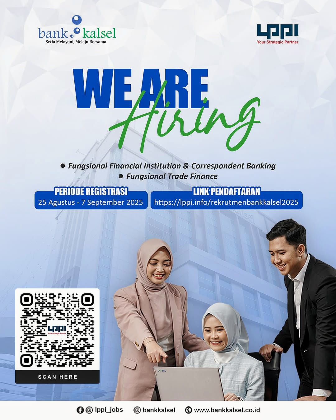 Periode pendaftaran dibuka mulai 25 Agustus 2025 hingga 7 September 2025. Raih kesempatan untuk berkembang bersama Bank Kalsel dan berkontribusi dalam dunia perbankan daerah.