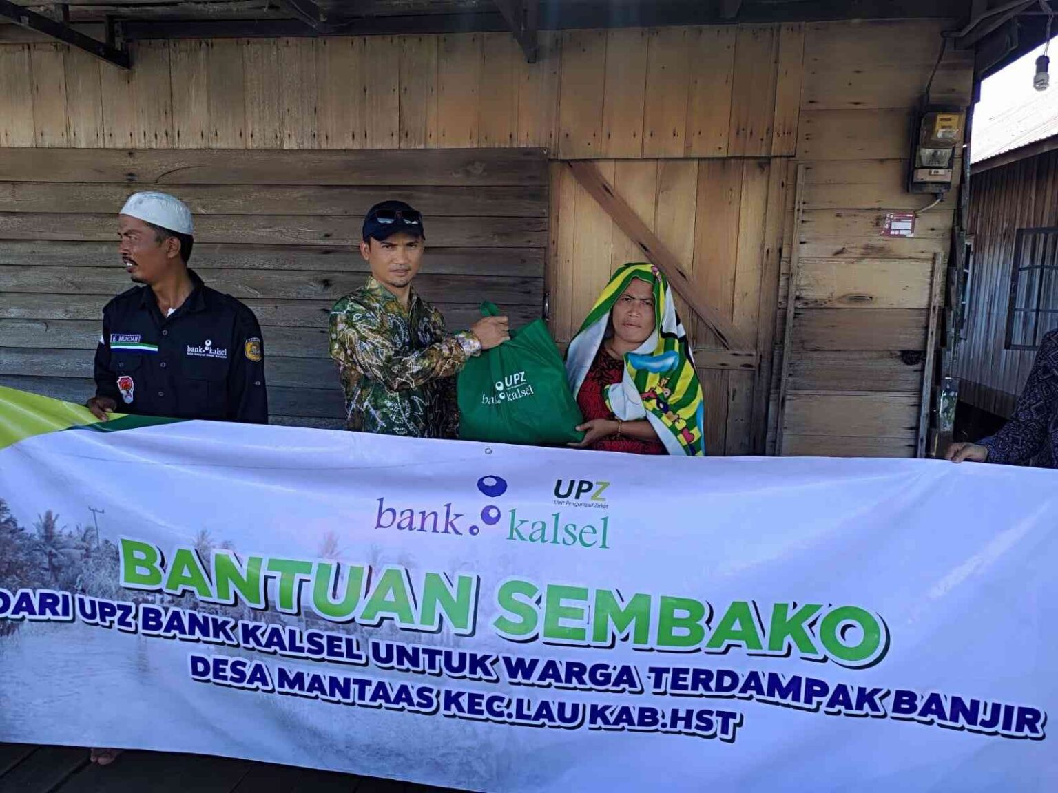 Bantuan tersebut diserahkan langsung secara simbolis oleh Kepala Bank Kalsel Cabang Barabai, Muhaini Achyar kepada Pembakal dan beberapa warga Desa Mantaas.