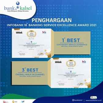 Bank Kalsel didapuk sebagai Peringkat 1 dalam Kategori Best Convenient Branch Experience dan