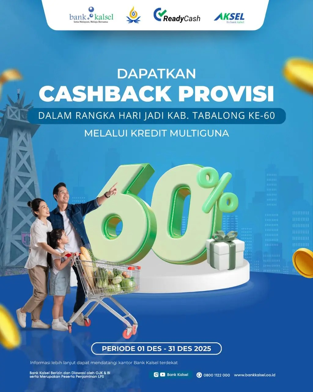 Promo ini berlaku selama 1–31 Desember 2025 dan dapat dimanfaatkan oleh ASN, maupun pensiunan sesuai syarat dan ketentuan yang berlaku. Melalui program ini, Bank Kalsel memberikan nilai tambah bagi masyarakat yang membutuhkan pembiayaan untuk berbagai kebutuhan, konsumtif.
