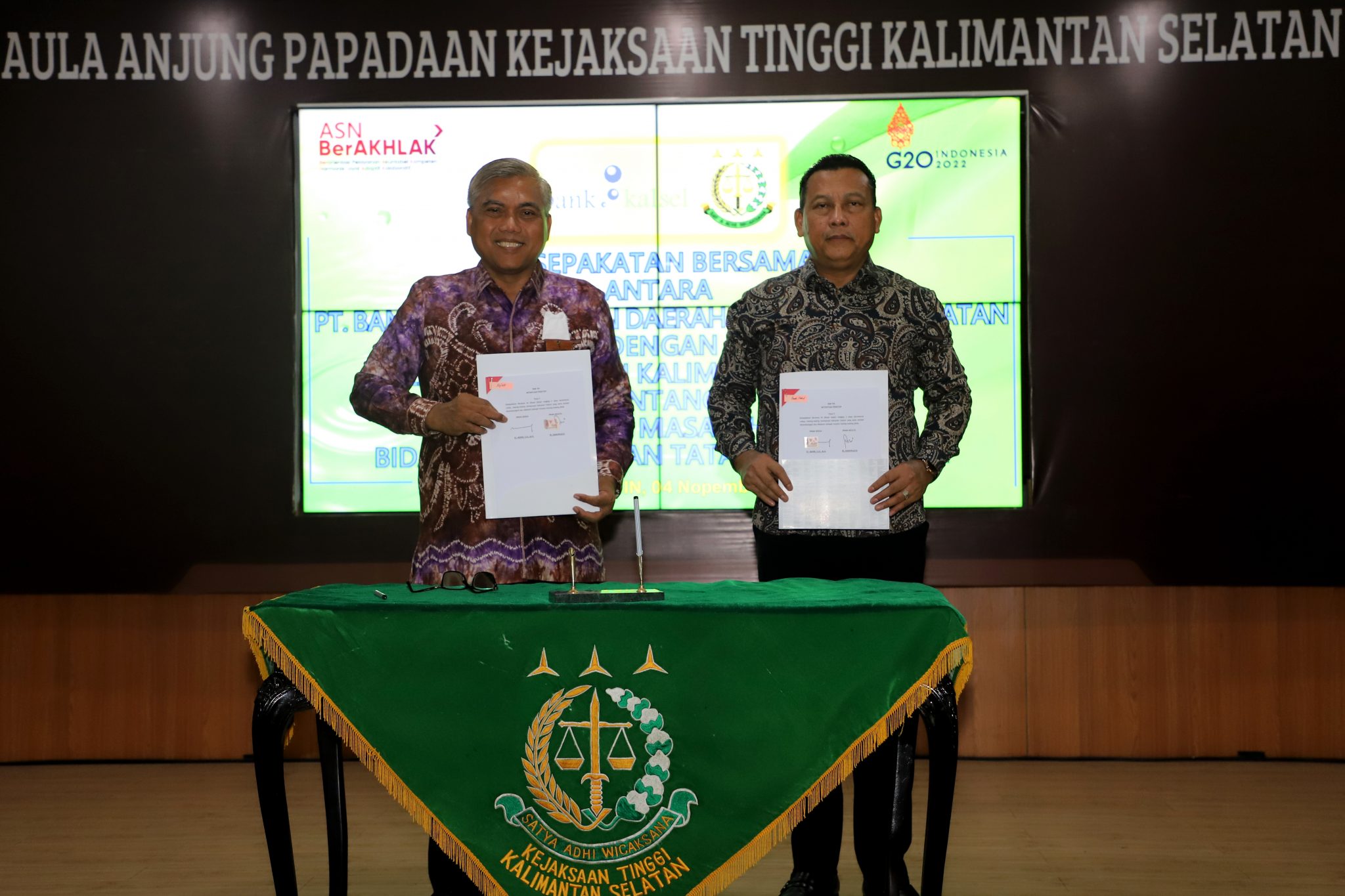 Penandatanganan dilakukan Direktur Utama Bank Kalsel, Hanawijaya, dan Kepala Kejati Kalsel, Dr. Mukri, SH., MH. Kegiatan disaksikan oleh Wakil Kepala Kejati Kalsel, Ahmad Yani, SH.,MH beserta unsur-unsur pimpinan di Kejati Kalsel; Plt. Komisaris Utama dan Komisaris Independen Bank Kalsel, Hatmansyah dan Syahrituah Siregar, Direktur Kepatuhan Bank Kalsel, IGK Prasetya, beserta jajaran Kepala Divisi Bank Kalsel.