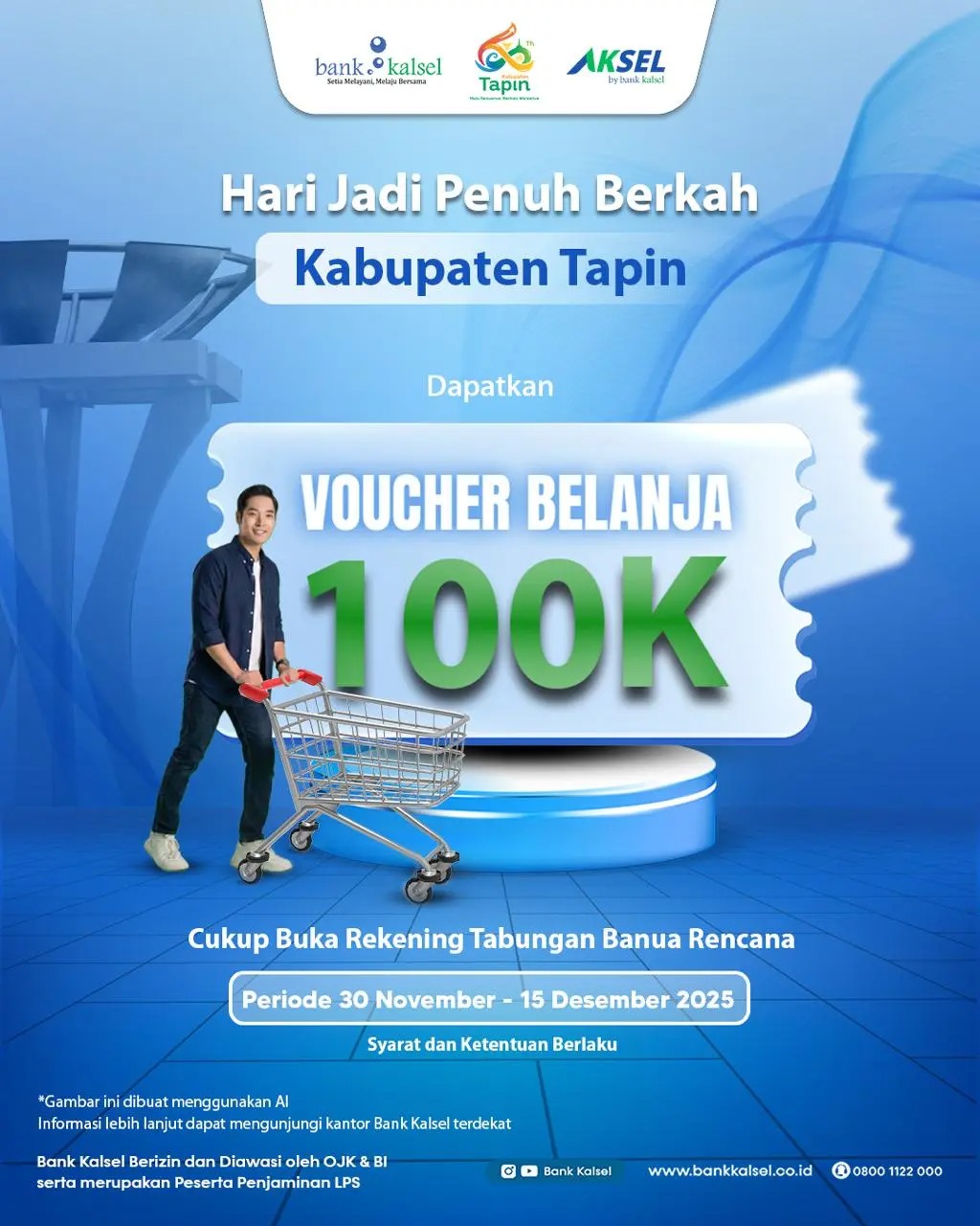 Program ini berlaku secara terbatas mulai 30 November hingga 15 Desember 2025 bagi nasabah baru maupun eksisting, sebagai bentuk apresiasi Bank Kalsel kepada masyarakat Kabupaten Tapin yang selama ini telah memberikan dukungan dan kepercayaan kepada Bank Kalsel sebagai mitra layanan keuangan utama di daerah.