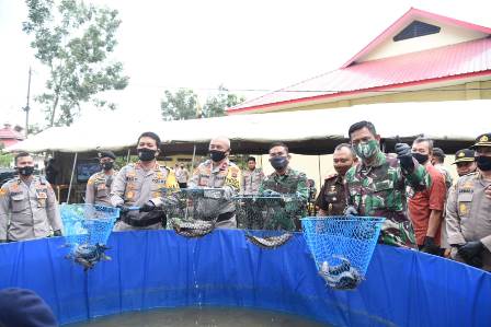 Dalam kesempatan yang sama, Polda Kalsel menggelar Panen Raya di Makosat Brimob Polda Kalsel dengan tema “Panen Ikan Lele Bersama Polda Kalsel Dalam Mewujudkan Ketahanan Pangan Dimasa Pandemi Covid-19”.