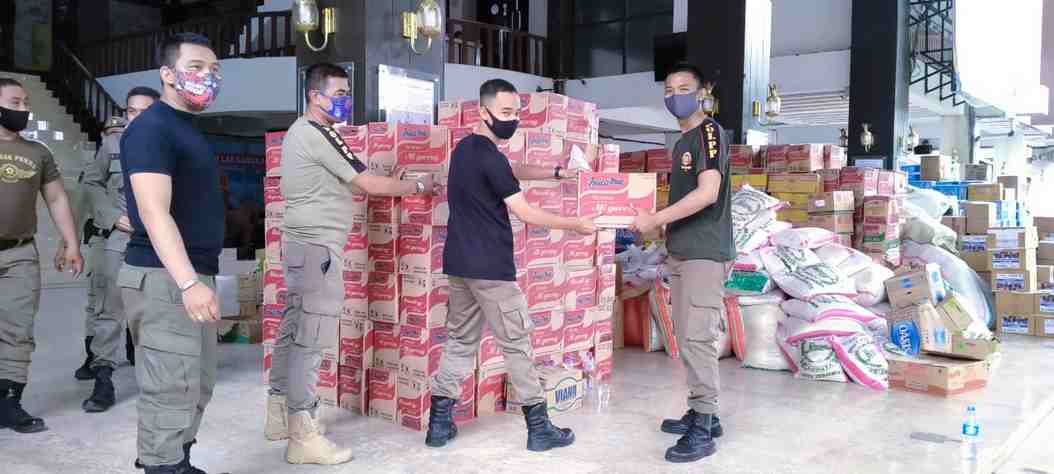 Bantuan tersebut sebagian besar terdiri dari sembako mulai dari beras, mie instan, minyak goreng, tepung, gula, sarden, biskuit, air mineral dan lainnya.