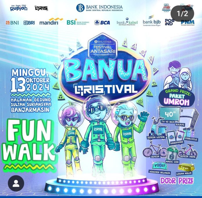 Banjarmasin, BARITOPOST.CO.ID – Fun Walk di Festival Antasari Banua QRIStival 2024 “Banua Balimpuar QRIS” yang diselenggarakan Bank Indonesia dan Bank Kalsel menyediakan hadiah puluhan juta rupiah.