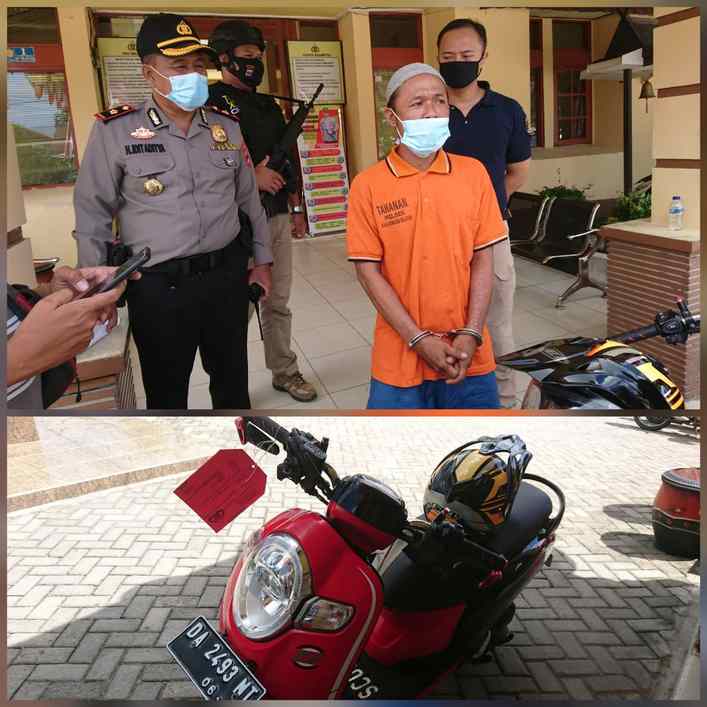 Warga Gang Pembangunan Jalan Rantauan Darat Banjarmasin Selatan itu kemudian diringkus beserta barang bukti Honda Scoopy warna merah DA 2493 NT yang sudah diganti plat nya