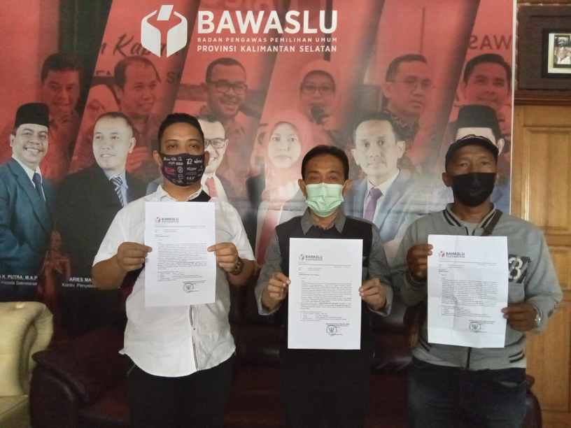 Klarifikasi oleh Bawaslu Kalsel dilakukan oleh Muhammad Nur Rahman Yasin, analis hukum Bawaslu Kalsel, terhadap pelapor Bahruddin Din Jaya dan dua saksi yakni Rolly Irawan dan Basit, di Bawaslu Kalsel, Selasa (11/5/2021).