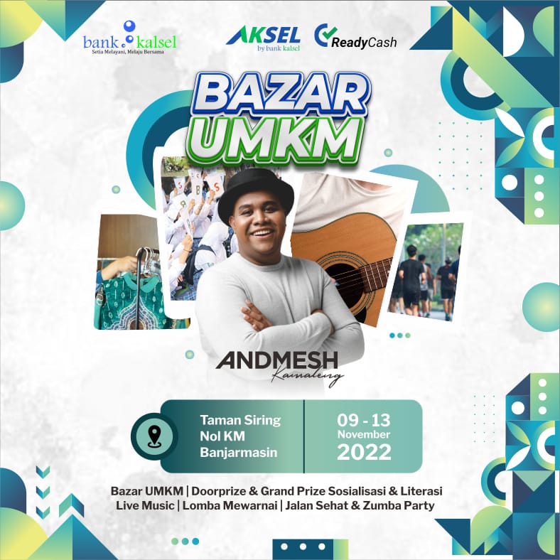 “Kepada seluruh nasabah setia Bank Kalsel dan juga masyarakat Kalimantan Selatan, ayo berhadir ke acara Bazar UMKM Bank Kalsel, yang Insya Allah pada tanggal 9 – 13 November 2022, di siring 0 km Banjarmasin. Akan banyak suguhan hiburan dan hadiah yang tentunya sayang untuk dilewatkan. Jangan lupa aktivasi mobile banking AKSEL by Bank Kalsel dan penggunaan layanan ReadyCash serta raih hadiahnya. Mari kita hadiri beramai-ramai menuju Siring 0 Km untuk menyaksikan BAZAR UMKM Bank Kalsel,” pungkas Hanawijaya.