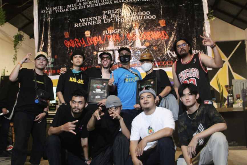 Tim Bboy Kalsel yang notabennya dihuni atlet Bboy Banjarmasin berhasil merebut juara di kategori Battle two on two (2 vs 2) yang berlangsung di salah satu tempat kopi ternama di Palangkaraya.