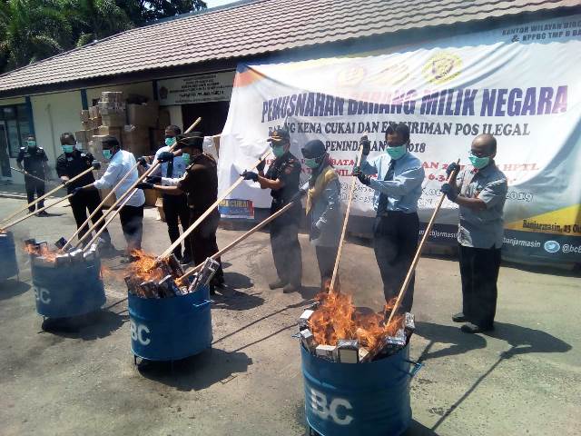 “Modus pengirimannya kebanyakan lewat laut yang biasanya alamat disamarkan baik penerima atau pengirim. Pemusnahan Barang Milik Negara (BMN) tersebut berupa Barang Kena Cukai (BKC) llegal dan kiriman pos luar negeri yang tidak memenuhi ketentuan larangan dan atau pembatasan dari Instansi terkait,”sebutnya.