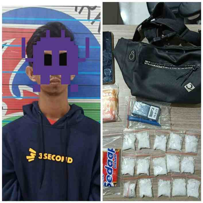 Sebelumnya sabu sabu tersebut telah diletakkan oleh pelaku dengan maksud diserahkan kepada pembeli. Namun apes ketangkap polisi dan selanjutnya ditemukan lagi 14 paket sabu sabu di samping kamar kecil atau WC rumah pelaku sewaktu dilakukan penggeledahan.