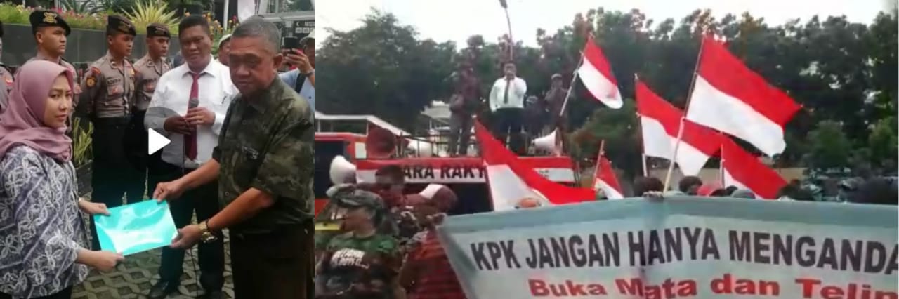 Usai berorasi kemudian kedua tokoh LSM dan ormas itu menyerahkan dokumen laporan yang disampaikan ke salah satu petugas KPK
