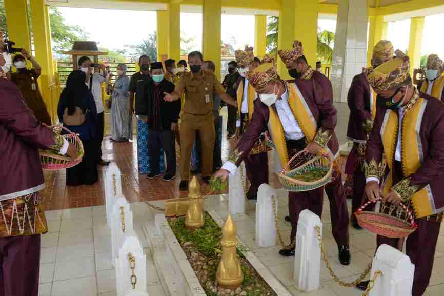 Banjarmasin,BARITO – Danrem 101/Antasari Brigjen TNI Firmansyah dengan mengenakan busana adat Banjar, hadiri upacara peringatan ke-159 tahun wafatnya Pahlawan Nasional Pangeran Antasari Tahun 2021 di Makam Pahlawan Nasional Pangeran Antasari. Senin (11/10/2021).
