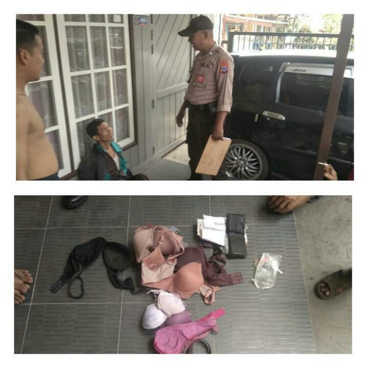 CURI BH-Muliadi ketangkap basah warga saat mencuri BH di Batu Benawa II dan diamankan polisi beserta barbuknya, Sabtu (15/6/2019) pagi. (foto:ist)