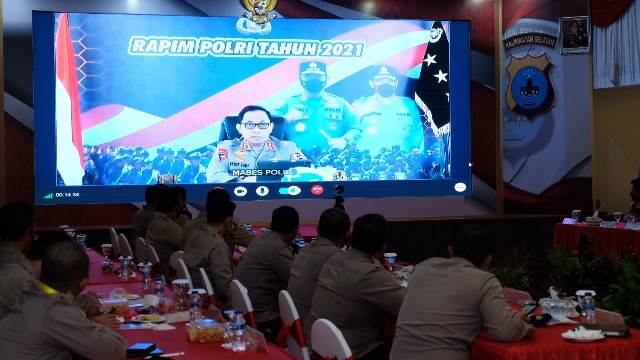 Polda Kalsel – Rapim Polri tahun 2021 dilaksanakan Kapolri Jenderal Polisi Drs. Listyo Sigit Prabowo, M.Si. dengan sistem daring di masa Pandemi Covid-19, yang diawali dengan penyampaian hasil evaluasi Pelayanan Publik dan Penghargaan Kategori Pelayanan Prima oleh Kemenpan RB.
