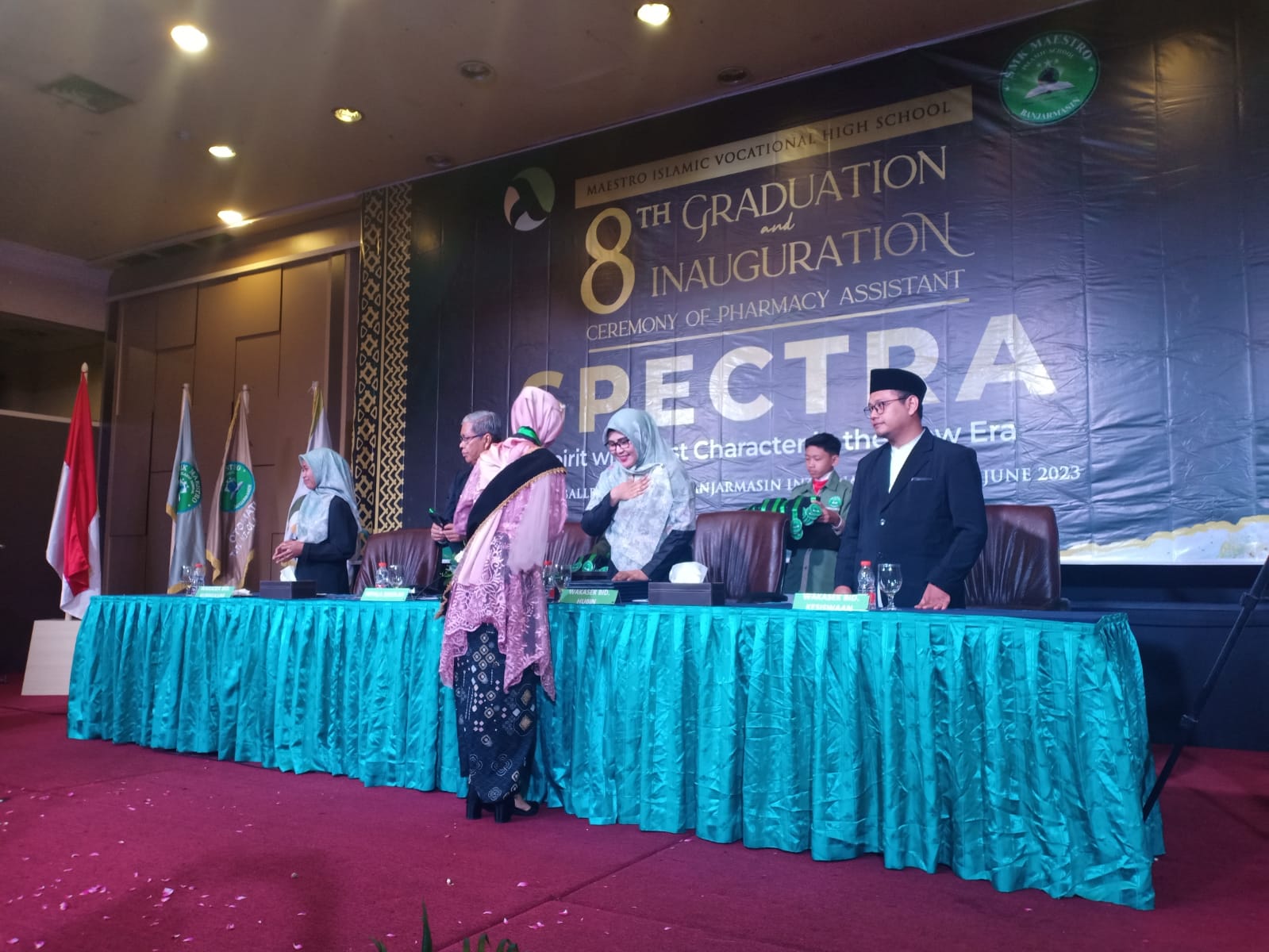 Banjarmasin, BARITOPOST.CO.ID – Betajuk ‘Maestro Islamic Vocational High School 8th Graduation and Inauguration Ceremony Of Pharmacy Assistant SPECTRA Spirit With Best Character in The New Era’, digelar di Himalaya Hotel Banjarmasin International, Kamis (15/6/2023).
