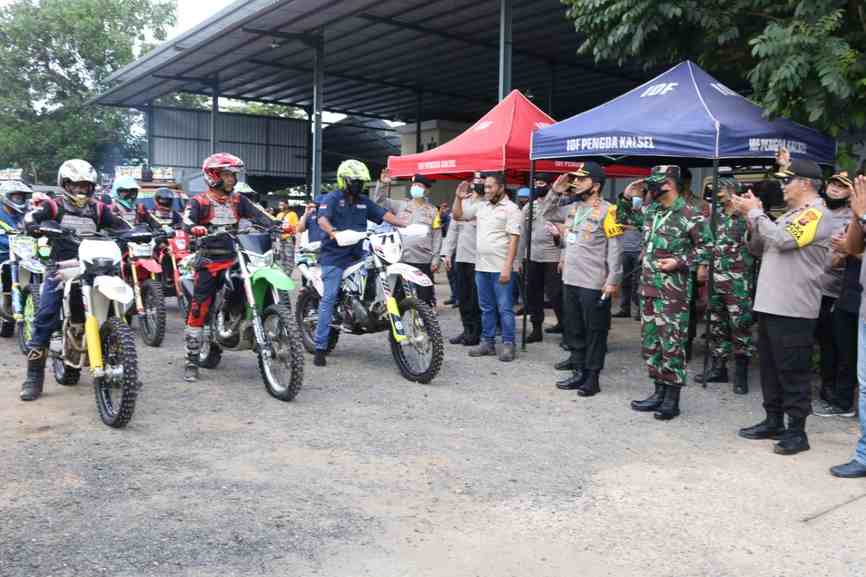 Sebelum dilepas secara simbolis oleh Kapolda Kalsel dan Danrem 101/Antasari, lebih dulu dilakukan penyerahan bantuan secara simbolis oleh Kapolda Kalsel dan Danrem 101/Antasari kepada Ketua IOF dilanjutkan foto bersama.