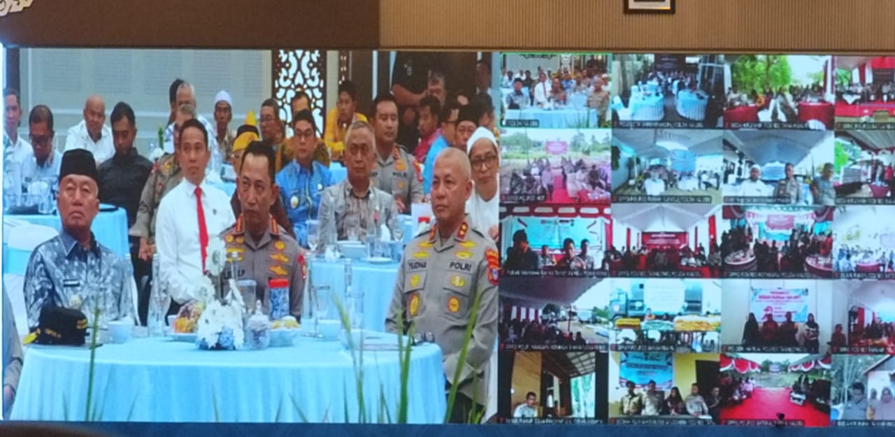 Kabagops Polres Batola Komisaris Polisi (Kompol) Suroto didampingi tokoh masyarakat saat video conference dengan Kapolri Jenderal Pol Listyo Sigit Prabowo