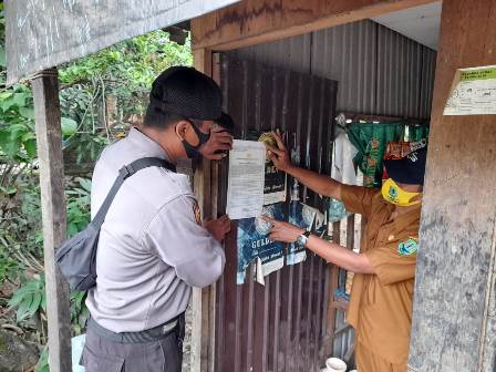 Bhayangkara pembina keamanan ketertiban masyarakat (Bhabinkamtibmas) Polsek Amuntai Utara Bripka Sri Sugiarto bersama Bhabinkamtibmas Bripka AM Anshari sosialisasikan maklumat Kapolda Kalsel Irjen Pol Dr. Nico Afinta, S.I.K,.S.H,M.H, Nomor : Mak/01/VIII/2020 tanggal 12 Agustus 2020.