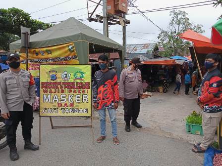 Himbauan agar memakai masker kepada pedagang pasar untuk menggunakan masker, himbauan agar sering cuci tangan, membiasakan pola hidup sehat dan jaga jarak minimal 1 meter dan itu sudah sesuai program Kapolda Kalsel Irjen Pol Dr Nico Afinta, S.I.K., S.H., M.H.