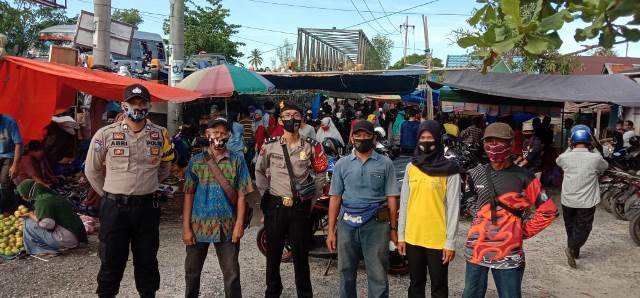 “Himbauan agar memakai masker kepada pedagang pasar untuk menggunakan masker, himbauan agar sering cuci tangan, membiasakan Pola hidup sehat dan Jaga jarak minimal 1 m, dan itu harus sudah sesuai Program Kapolda Kalsel Irjen Pol Dr Nico Afinta, S.I.K., S.H., M.H,” tuturnya.