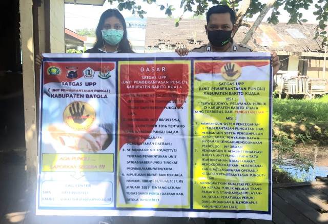 Polres Batola kegiatan sosialisasi tentang pungutan liar (Pungli) oleh Bripka Nanang Bhabinkamtibmas Desa Pulau Sewangi Kec. Kab. Batola, Kalimantan Selatan, Rabu (04/11/2020).