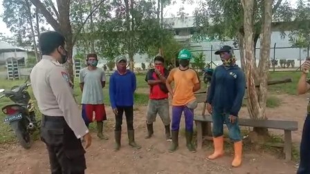 Bhabinkamtibmas Polsek Karang Bintang Polda Kalsel turun blusukan ke daerah binaannya untuk memberikan himbauan kepada warga masyarakat supaya tetap mematuhi protokol kesehatan, Minggu ( 20/09/2020).