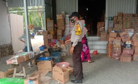 Polres Tanah Bumbu Polda Kalsel dalam rangka pemantauan stok dan harga barang, Bhabinkamtibmas Polsek Karang Bintang Bripka Selamat Riyanto melaksanakan monitoring dan pengecekan terhadap toko sembako di Desa Manunggal Kecamatan Karang Bintang Kabupaten Tanah Bumbu, Jumat (4/9/2020).