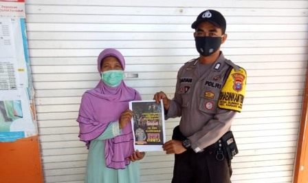 Bhabinkamtibmas Polsek Karang Bintang Polda Kalsel Bripka Harvani melaksanakan kegiatan patroli sekaligus berdialog dengan masyarakat guna menyampaikan larangan membuka lahan dengan cara dibakar (Karhutla) di Desa Sumber Wangi Kecamatan Karang Bintang Kabupaten Tanah Bumbu, Rabu (16/9/2020).