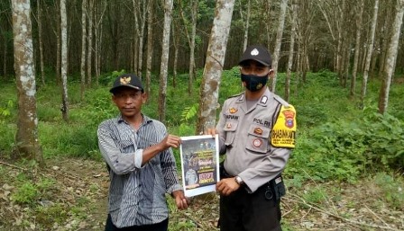 Dalam kesempatan tersebut Bripka Harvani menjelaskan maksud dan tujuan dilakukannya sosialisasi dan himbauan Karhutla kepada warga masyarakat, guna mengantisipasi terjadinya kebakaran hutan dan lahan dengan menyambangi warga.