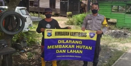 “Di imbau kepada seluruh elemen masyarakat untuk menjaga kelestarian terhadap hutan serta tidak melakukan pembakaran Hutan dan Lahan. Membakar hutan dan lahan sangat berbahaya dan berpotensi menyebabkan kebakaran lahan yang akan menimbulkan kerugian bagi diri sendiri maupun orang lain,” ucap Bhabinkamtibmas.