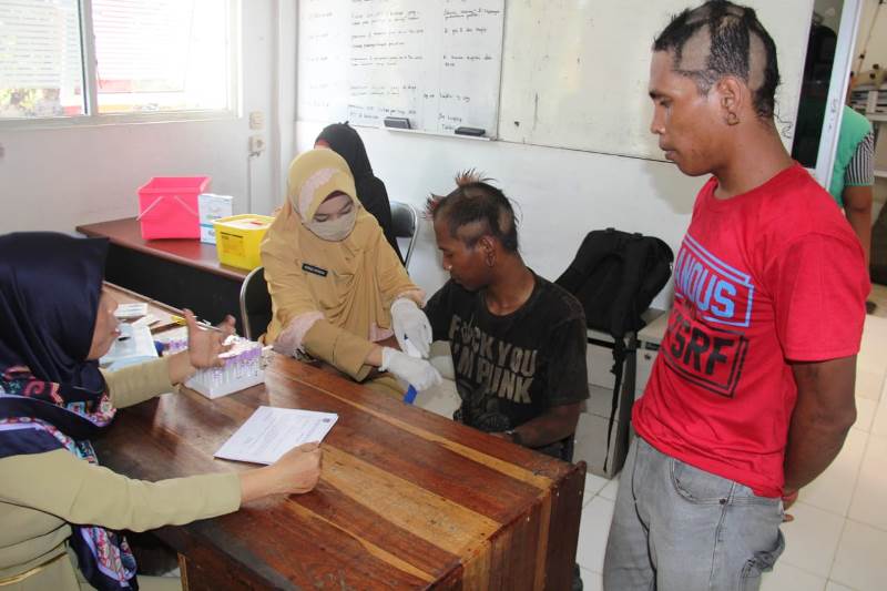 Sejumlah anak punk yang berhasil diamankan oleh Satpol PP, dilakukan pemeriksaan Voluntary Counseling dan Testing (VCT), untuk memeriksa ada tidakya penyakit HIV, oleh Dinas Kesehatan Tanbu.