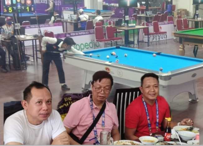 “Atlet kita tinggal fokus menghadapi satu nomor lagi di double dan single putra bola sembilan,” ungkap Ketua POBSI Kalsel, H Mustohir Arifin alias H Imus bersama Chef de Mission (CdM) Kontingen PON Kalsel klaster Mimika H Fitri Rifani, dan pelatih Noor Fathulliansyah.