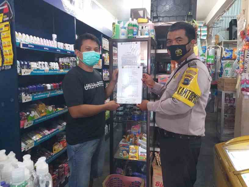 Banjarmasin, BARITO – Bhabinkamtibmas Basirih Selatan Aipda Abdul Azis melaksanakan kegiatan penempelan dan sosialisasi Surat Edaran (SE) Walikota Banjarmasin tentang Pemberlakuan Pembatasan Kegiatan Masyarakat (PPKM), Senin (11/1/2021). Hal itu dalam upaya pengendalian Covid-19 di kota seribu sungai ini, dengan menempelkan SE itu di Minimarket Sembiring di Jalan Cendrawasih RT 06.