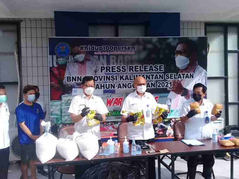Dipaparkan Jenderal Bintang Satu ini penangkapan tersangka berdasarkan informasi masyarakat Tersagka yang mengaku hanya kurir itu kemudian dibawa ke Kantor BNNP Kalsel untuk mempertanggungjawabkan perbutanya