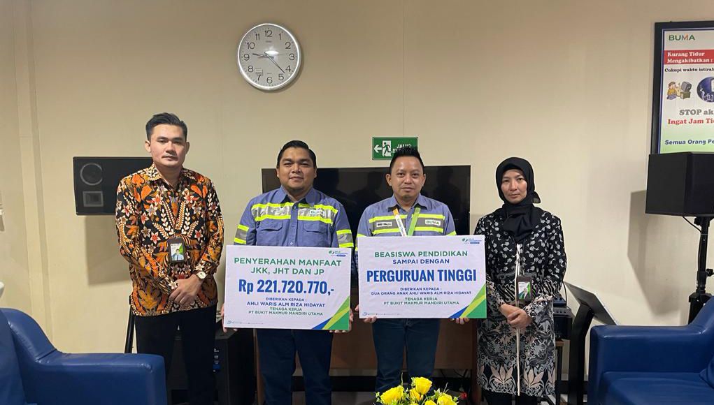 Batulicin, BARITOPOST.CO.ID – BPJS Ketenagakerjaan Kantor Cabang Batulicin menyerahkan secara simbolis Santunan Jaminan Kecelakaan Kerja (JKK) almarhum Riza Hidayat yang merupakan Tyrmen (Teknisi Workshop Tyre Permanent) PT Bukit Makmur Mandiri Utama yang meninggal dunia beberapa waktu lalu.