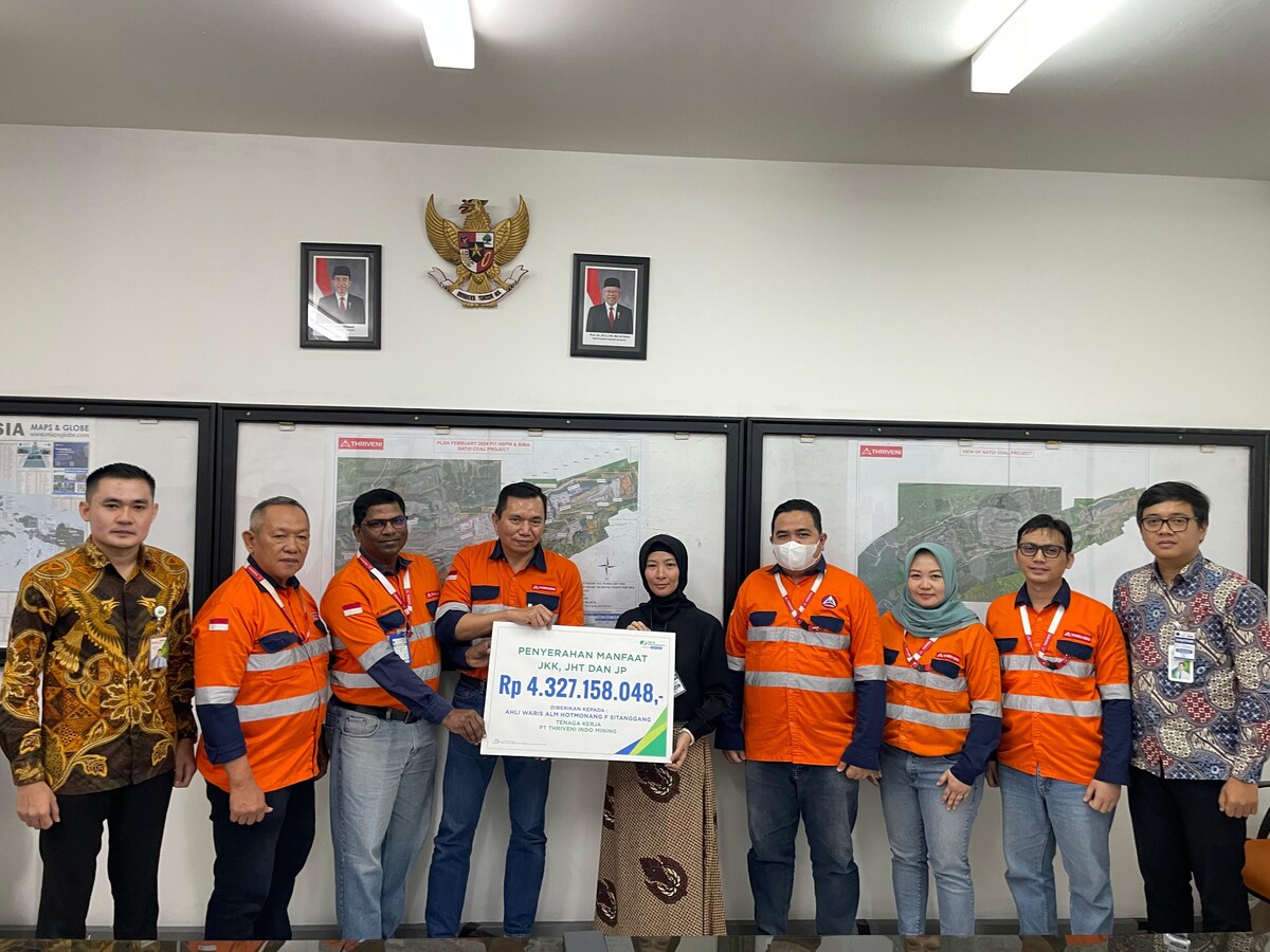 Adapun santunan diberikan kepada ahli waris tenaga kerja meninggal dunia akibat kecelakaan kerja di PT Thriveni Indo Mining, atas nama Adeliane Dewi Rukmana sebesar Rp4.327.158.048. Terdiri Santunan Jaminan Hari Tua, Jaminan Pensiun dan Jaminan Kecelakaan Kerja serta Beasiswa Anak sejak jenjang pendidikan Taman Kanak-kanak (TK) hingga Perguruan Tinggi.