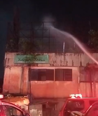 Api muncul di sebuah bangunan atau eks Hotel Harum Manis membuat warga pasar dan pedagang di kawasan tersebut yang masih buka