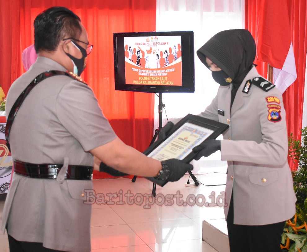 Pelaihari,BARITO – Dimomentum Hut Polisi Wanita (Powan) ke 72 yang jatuh pada 1 September 2020, Kapolres Tala AKBP Cuncun Kurniadi,SH,Sik memberikan reward kepada personil Polwan Polres Tala atas prestasinya.